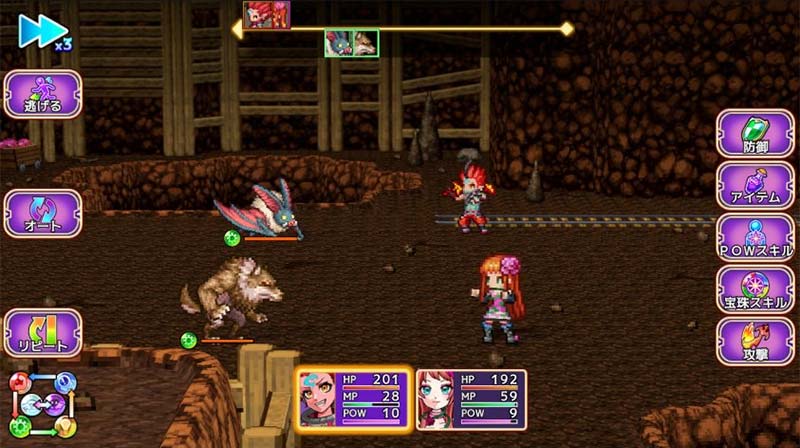 バトルはサイドビューで展開される王道のターン制コマンドバトルを採用しています。