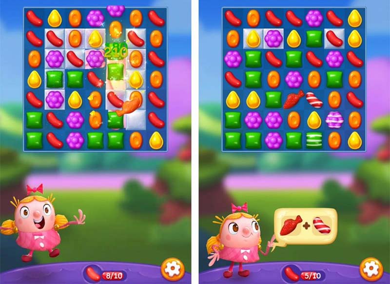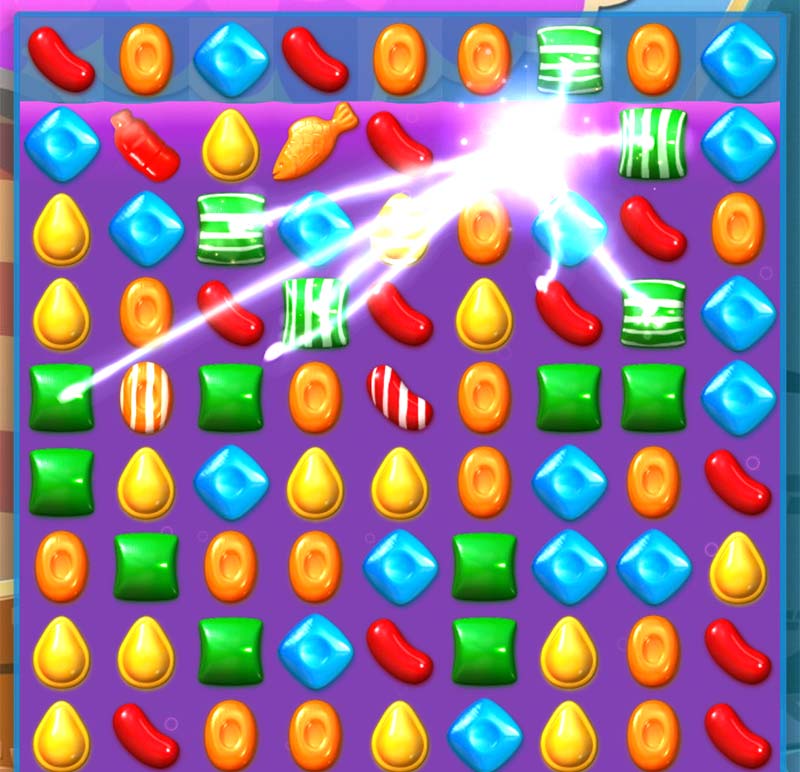 キャンディークラッシュの遊び方はとてもシンプル。同じ色のキャンディーをスワイプして3つ以上並べるだけ。
