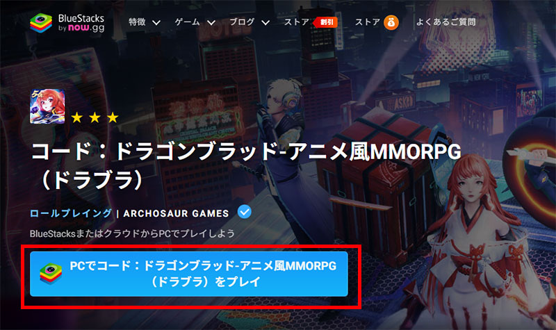 「PCでコードドラゴンブラッド(ドラブラ)をプレイ」ボタンをクリックして、ファイルを入手してください。