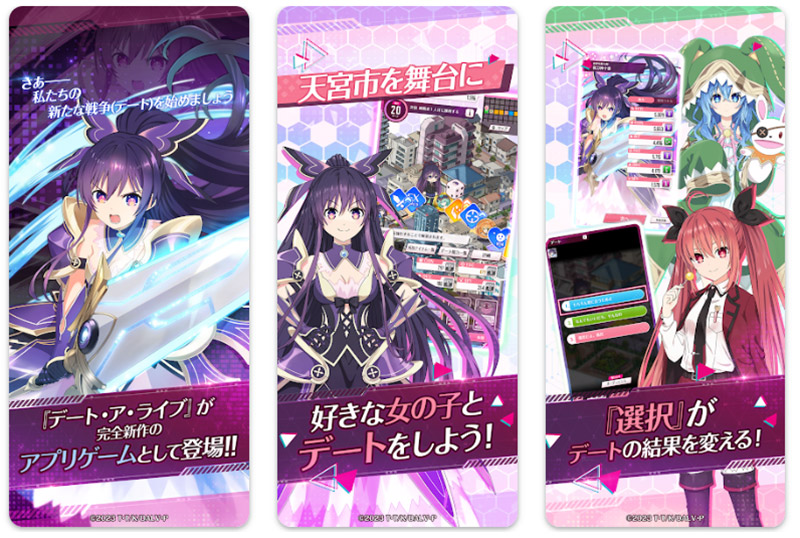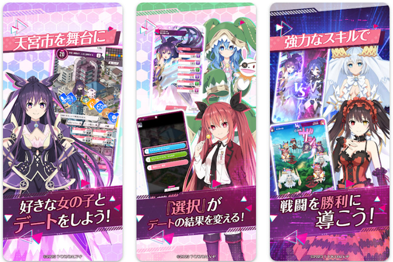 夜刀神十香、四糸乃、時崎狂三といったアニメでおなじみのキャラクターたちと、さまざまなシチュエーションでデートを楽しめます。