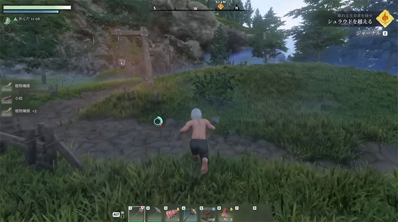 休憩バフは、焚き火を設置して座るだけで獲得できます。バフが有効な間はスタミナ最大値が大幅に上昇し、戦闘や探索が格段に楽になります。