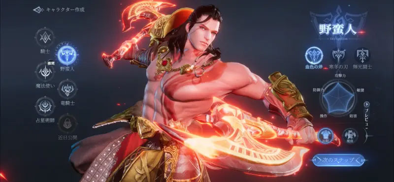 竜騎士(近接アタッカー)、魔法使い(魔法攻撃)、占星術師(サポーター)、野蛮人(物理攻撃)、騎士(タンク/守護者)