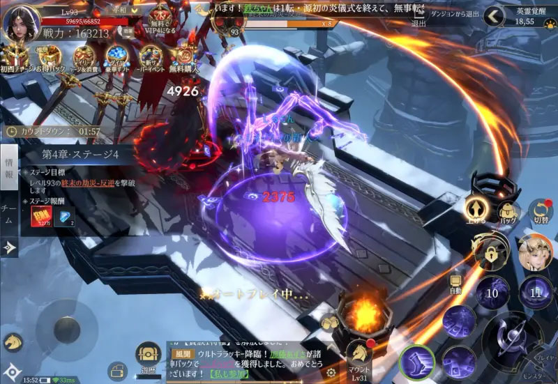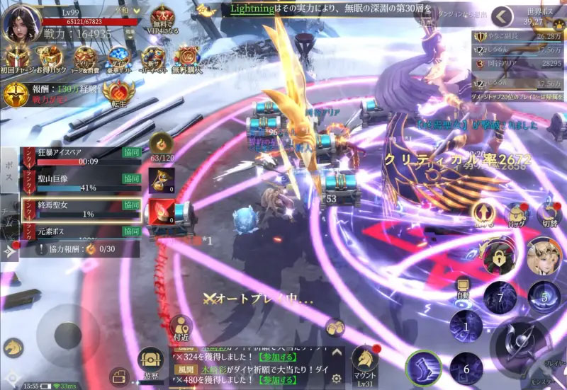 オートバトルに対応しているので、美しい演出を眺めながら手軽にプレイできるのも嬉しいポイントです。