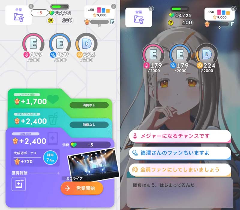 プロデュースを進めていくことで、プレイヤーとアイドルの1対1の物語が展開します。