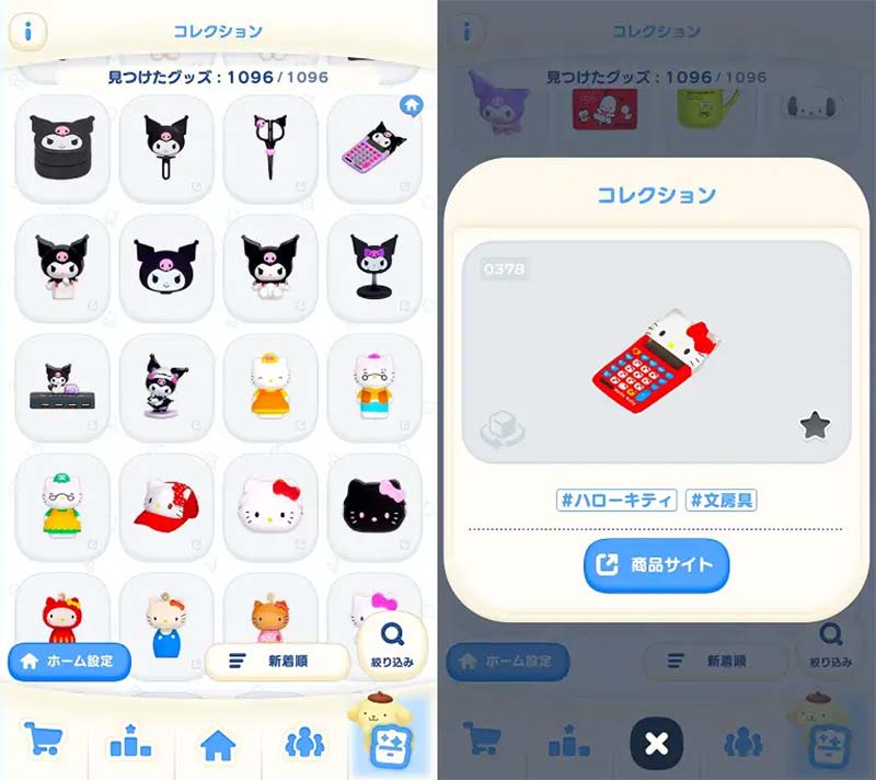 懐かしいグッズから最新グッズまで1,000種類以上が登場し、パズルで見つけたグッズはコレクション画面でいつでも見返せます。