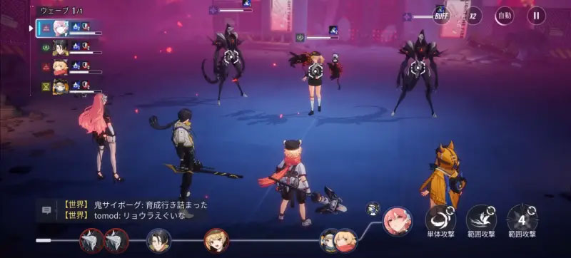 戦闘中は異格者のスキルに合わせて無数の編成を構築でき、戦況に応じてリアルタイムで指揮を執ることができます。多様なスキル連携と戦術設定を駆使して、下剋上バトルの爽快感を味わえます。