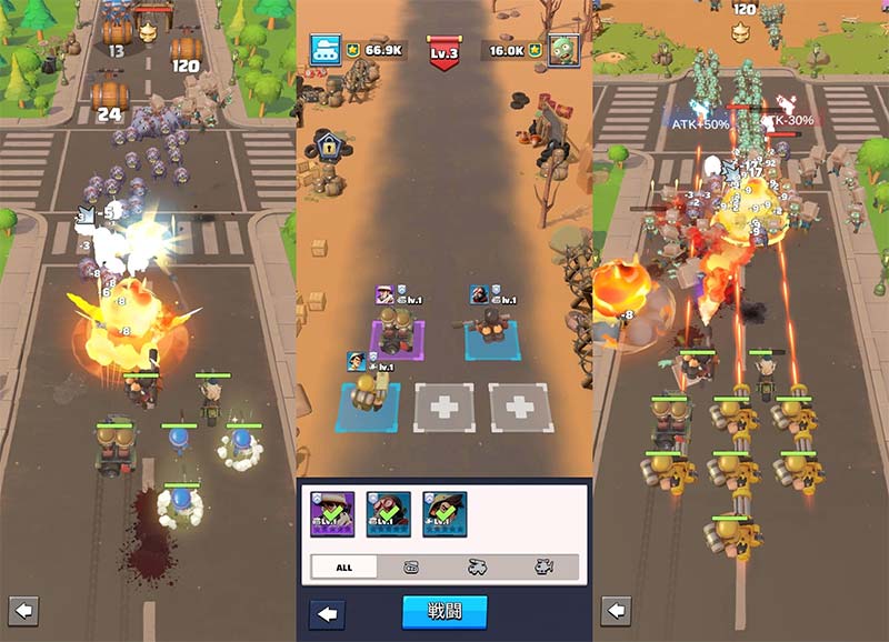 ラストウォー サバイバルのバトルは縦スクロール型のアクションで、操作はとってもシンプル。タップやスワイプだけで自分の軍隊を動かし、押し寄せるゾンビの大群を迎え撃ちます。