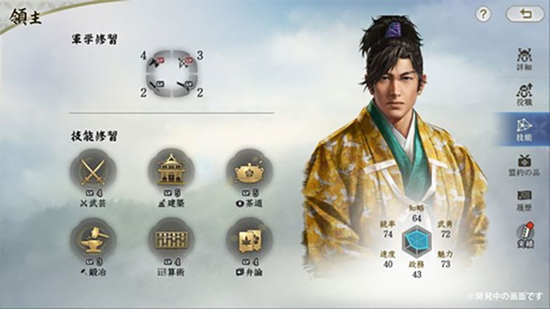 - 軍学:弓兵・足軽・鉄砲・騎兵の戦闘力アップ