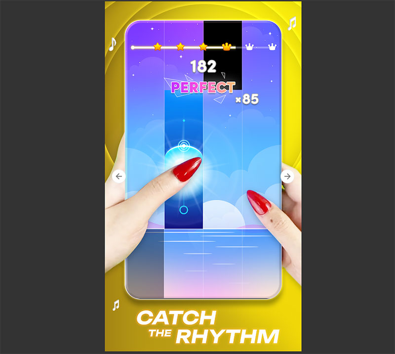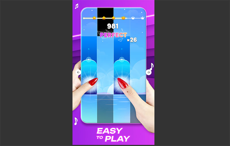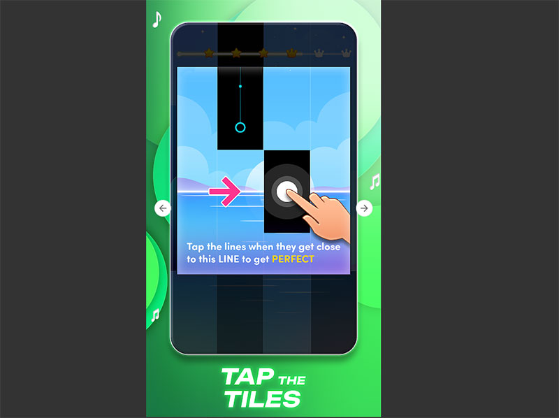 上から流れてくる黒いタイルを音楽のリズムに合わせてタップするだけ。白いタイルをタップしたり、黒いタイルを逃したりするとゲームオーバーになります。