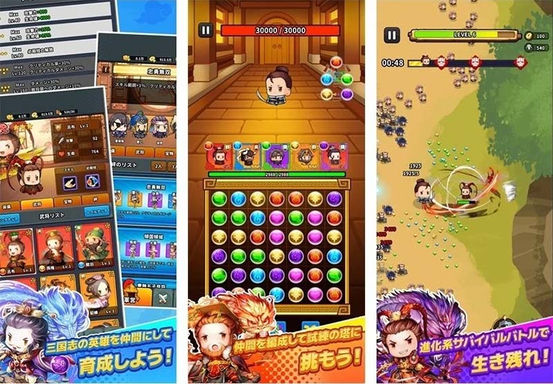 ヴァンパイアサバイバー系の爽快バトルに三国志の世界観を掛け合わせた作品で、「三国志タクティクス(サンタク)」シリーズのキュートなキャラクターたちが戦場を駆け巡ります。