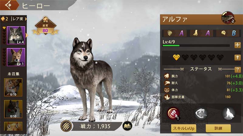 オオカミの群れを率いて軍団を作り、戦略を用いて敵を倒しオオカミ帝国を繁栄させていくストラテジー要素満載のゲームです。