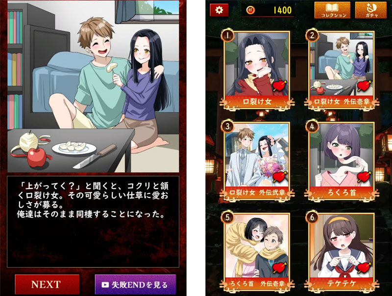 普段は可愛い美少女として描かれている妖怪たちですが、選択肢を間違えると一転、ゾッとするようなバッドエンドが待ち受けています。